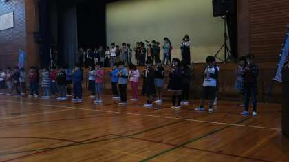 西淡路小学校からは、3年生と金管バンドクラブが舞台発表で登場し、歌やダンス、楽器演奏で会場から大きな拍手をもらいました。