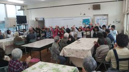 今日の日のために練習した「だいすきだいすき〜ぼくのおばあちゃんとおじいちゃん」をみんなで合唱すると、利用者のみなさんから大きな拍手をいただきました。ご年配の方々が利用されているサービスですので、歌詞の内容と1年生が一生懸命歌ってくれたことにとても喜んでおられ、
