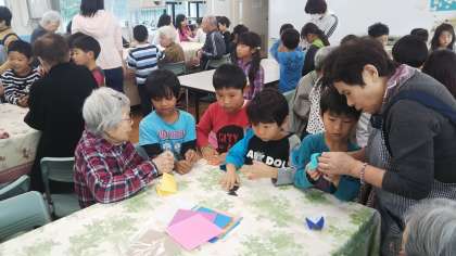歌のあとは、折り紙やおじゃみ、あやとりなどをして一緒に遊び、ほのぼのとした優しい時間が過ぎていきました。
