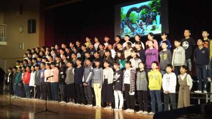 メッセージの合間の素敵な歌声とともに、6年生が一生懸命考えたという気持ちが、見に来られた方々の心に熱く伝わり、