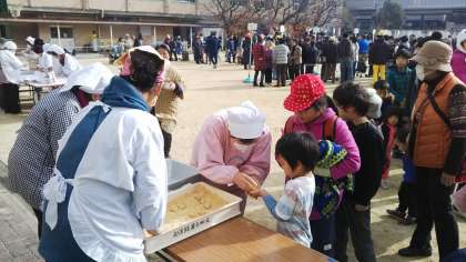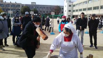 西淡路小学校の先生や子どもたちも、おもちをつかせてもらいましたよ!
