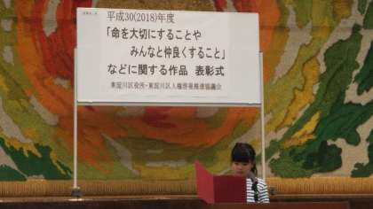 表彰式に続いて、受賞した人権作文の朗読が行われました。