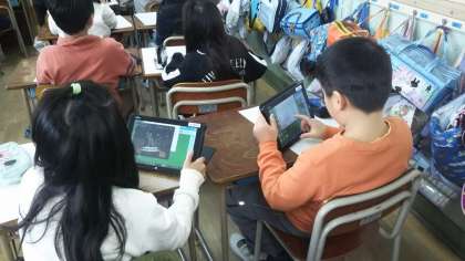タブレットに保存していた画像を使って、各自が学習発表会やドコドコドンでのがんばりを思い返しながら下絵を描いていました。