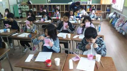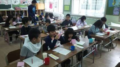 最後に、試薬を使って自分の歯の汚れをチェックしました。汚れていると試薬が赤に変わります。各自手鏡を使いながら自分の歯の汚れをチェックし、上手な歯のみがき方も教えていただき、とても勉強になる時間となりました。