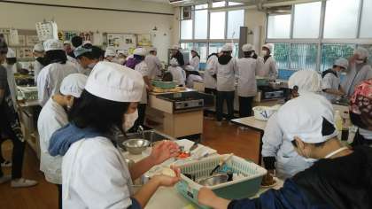 先日の6年2組に続き、今日は6年1組が調理実習を行いました。
