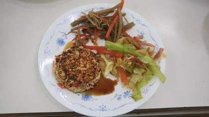 メニューは班ごとに決めた3品。各班、工夫をこらしたメニューがずらりと並び、中には豆腐ハンバーグなど、なかなかレベルの高い(?)調理にチャレンジする班も…。