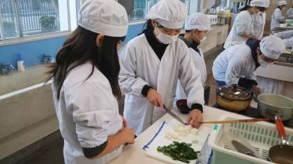 今日は5年2組で調理実習が行われました。