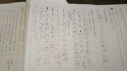 まだ、お話をつくっている途中ですが、「すいかたろう」や「かぶたろう」「りんごひめ」など、さまざまな名前がついた登場人物が、これからどんなことをしていくのかとても楽しみです!