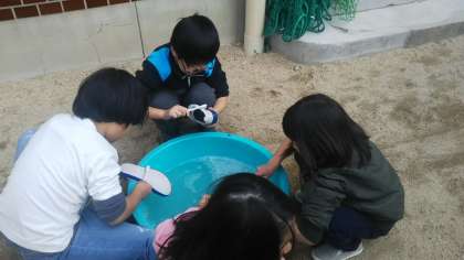 今日の「くつあらい」、「はじめて自分のくつを洗った」という子もたくさんいましたが、みんなとてもうれしそうに自分の上ぐつを洗っていました。今までやったことがないことを経験し、できるようになるということは、子どもたちにとって大きな自信になりますね!