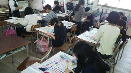3年生は図画工作の時間に「銀河を泳ぐ魚」をテーマに絵を描いています。