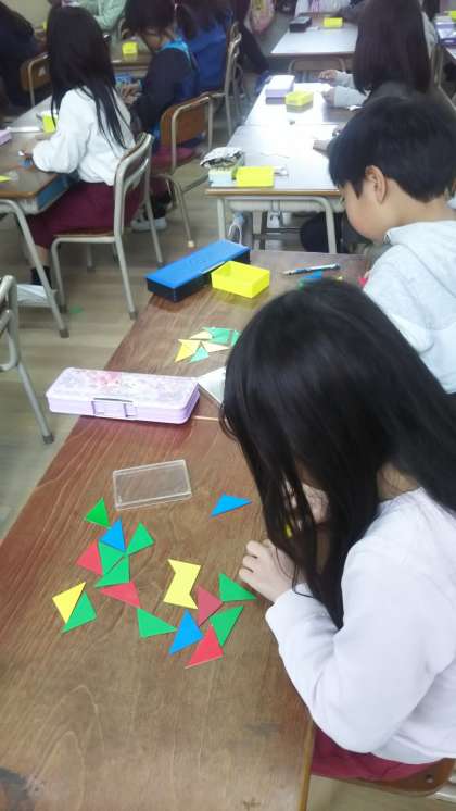 みんな色板を様々なかたちに操作しながら、じっくり考えることができていました。