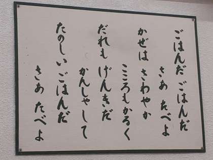 おはようございます。いよいよ最終日、朝の活動を終えて、ご飯をいただきます。ご飯の前に、いつも歌っていただきました。