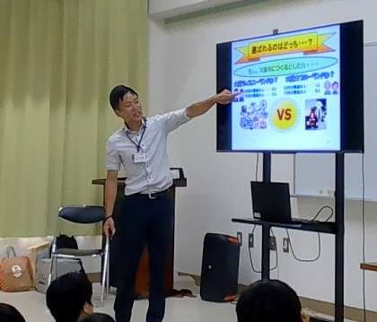 東淀川区の選挙管理委員会の方に来ていただきました。選挙で投票することの大切さを教えていただいたり、投票用紙に書いて投票箱に用紙を入れる「模擬投票」の体験をしたりしました。