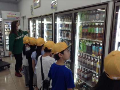3年生は社会見学で地域のお店に見学に出かけています。昨日はLIFEさんに行きました。今日はセブンイレブンさんに行きました。店員の方からお店の中やバックヤードを案内していただきました。多くの子どもたちが利用させてもらった事があったようで、子どもたちもどこに何が置いてあるのかよく知っていました。