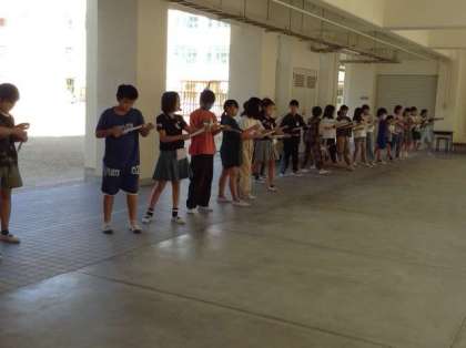 4年生は空気の学習です。今日は空気でっぽうでスポンジの玉を飛ばしています。ポンッといい音がするので子どもたちも楽しく学習しています。何度も飛ばしているうちにどうすれば遠くまで飛んでいくのか気づいてきたようです。