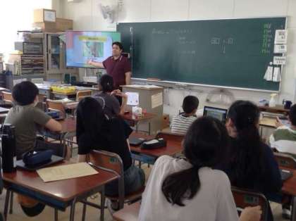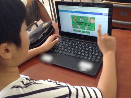 6年生はWho am I?という動物クイズをタブレットで作成しています。動物の生息地や特徴を英語でクイズのヒントにしています。写真をつけて、みんなに答えてもらいます。なかなか難しい名前の動物が出てきているようです。