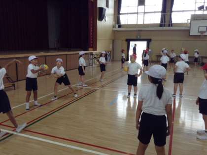 今日はグループでボール運動をしました。相手が受けることのできる強さで投げたり、すぐにキャッチして投げたりと声をかけ合いながら楽しみました。2年生は明日の参観も体育になります。保護者の皆様よろしければ動きやすい服装でご参加ください。