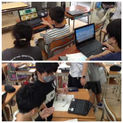 本日はご参観いただきありがとうございました。5年生は理科と社会の学習です。理科では、「ヒトのたんじょう」について自分で設定した課題について調べて発表ノートにまとめていきます。友だちが制作中のノートも参考にしながら取り組みました。社会科では身の回りの工業製品を分類しどこで作られているのか都道府県ごとに発表ノートにまとめました。6年生は外国語活動です。絶滅危惧種について準備をしたクイズを英語で出し合い当たればシールがもらえます。シールのデザインも可愛いものばかりでした。