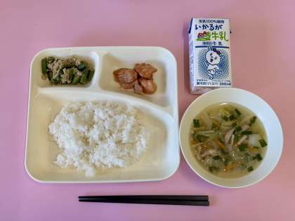 給食では、しょうが汁、にんにく、砂糖、塩、こいくちしょうゆ、ケチャップ、トウバンジャンを混ぜ合わせて作っています。
