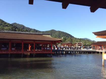 爽やかな秋晴れで気持ちが良いです。厳島神社の拝観、宮島水族館、お土産のお買い物など最後の思い出を作っています。お小遣いを上手に使っている子、あれバランス間違えたかもー?と色々な声が聞こえてきますが…みんな楽しんでいるようです。