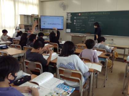 5年生は分数の学習をしています。足したり引いたりの計算はもちろん、今日は時間を分数を使って表す学習です。40分は分数で表すと何時間ですか?という問題に、時計の図を見ながら意見を出し合いました。家でもしっかり復習しましょう。