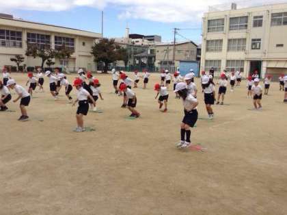 1年生は体育科でなわとびの練習を始めました。今日はなわを結んだり、ほどいたりの練習や回さずにと跳びこえる練習をしました。これから色々な跳び方にチャレンジします。たくさん練習しましょう。