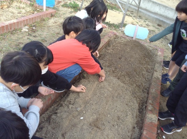 2年生は学習園に行き、ハツカダイコンの種を植えました。小さくてとてもかわいい種を見た2年生は「これがあんなに大きくなるのかあ!」と驚いてました。2月に収穫予定です。楽しみですね。