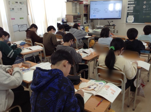 5年生の算数では多角形の性質について調べています。実際に多角形を作り、辺や角に注目して色々な気づきをもとにまとめることができました。