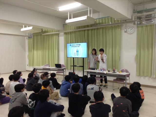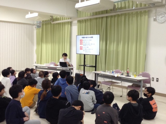 今日は薬剤師に来ていただき、薬の使い方について学習しました。薬を飲む時の水の量や効果が出始める時間など詳しく教えていただきました。