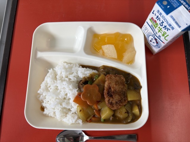 カツカレーライス フルーツゼリー 牛乳