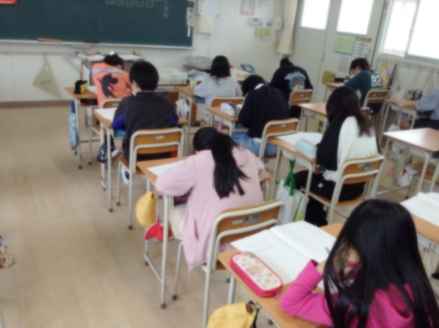 6年生対象の「全国学習状況調査」を行いました。国語、算数のテストをがんばりました。
