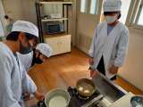 5年生は家庭科で「ゆでたまご」をつくりました。 家庭科室でガスコンロを使っての調...