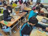 「綿棒」を使って色付けをしていく絵画作品の制作に5年生が取り組んでいました。 い...