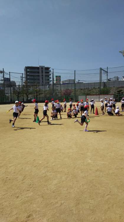 気持ちのいい青空の下でのびのびとリレーをしました。ゴールを目指してチームでかけぬけます。