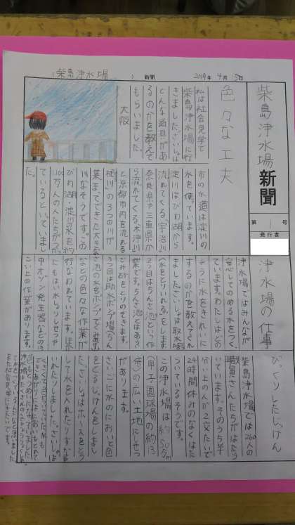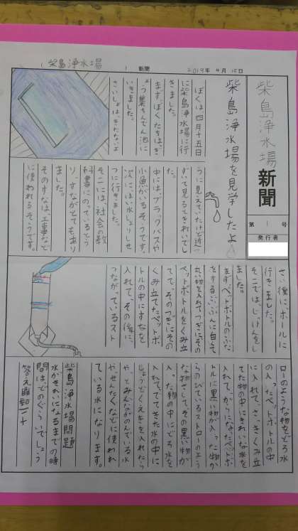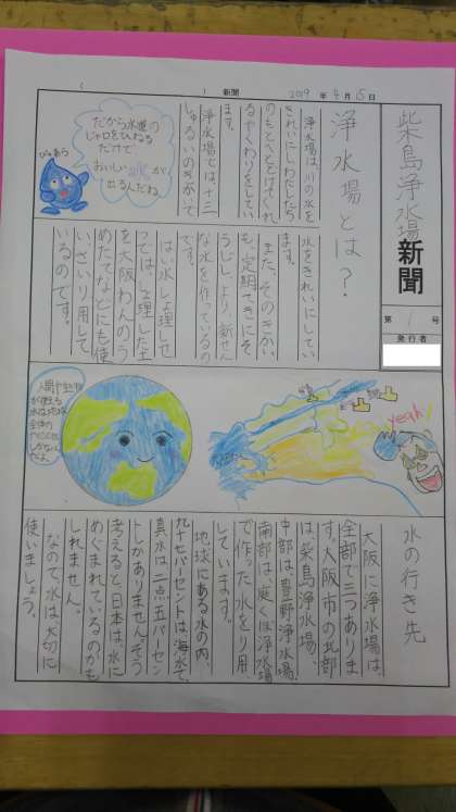 先日社会見学に行った柴島浄水場で勉強したことを新聞にまとめました。