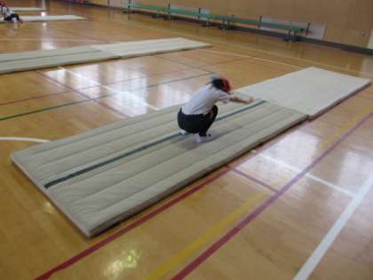 マット運動するときの大切なことを、しっかり聞いて、前転、後転することができました。