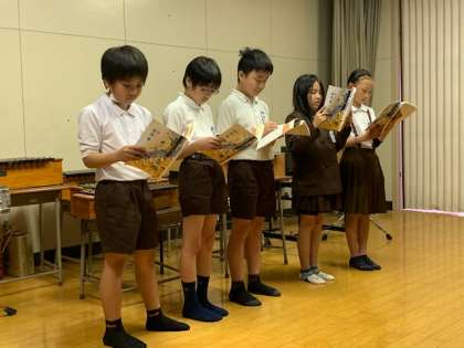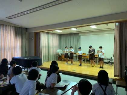 国語科で学習している「サボテンの花」の音読発表会を行いました。舞台に上がってみんなに注目されるとさすがに緊張しますね。