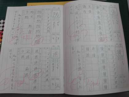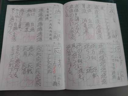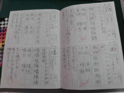 とめ、はね、はらいに気を付けて、漢字の練習を頑張っています。