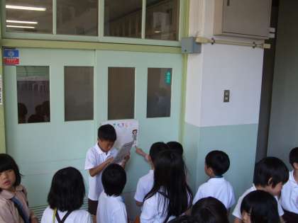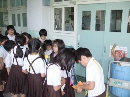 2年生のお姉さん、お兄さんと一緒に手をつないで、学校を案内してもらいました。