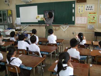 月2回、水曜日の朝の時間に、読み聞かせのボランティアさんに来ていただいています。