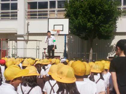 5月23日(木)の児童集会の時間に東淀川警察のお巡りさんに来ていただき、不審者についてや自分の身を守るためのお話をしていただきました。