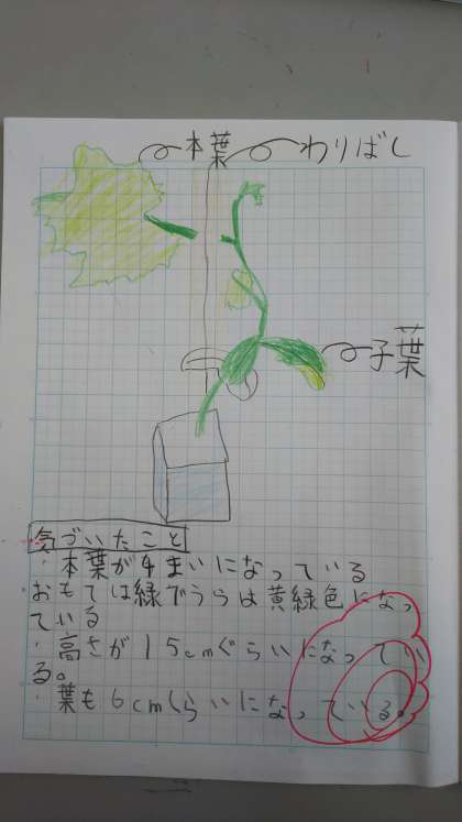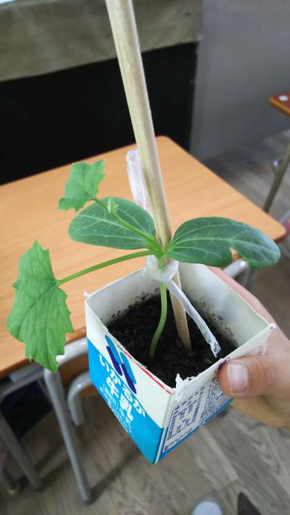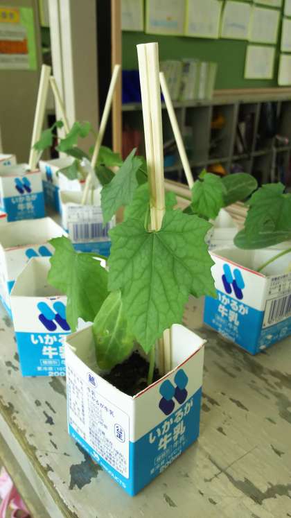 種を植えてから一か月。少しずつ育ってきました。まだまだ種の子もいますが、子どもたちはがんばってお世話をしています。