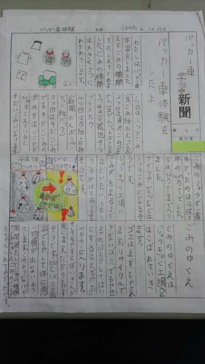 4年生 パッカー車体験新聞1