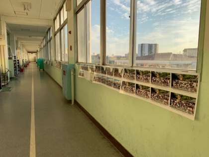 修学旅行の写真が届きました。今週から教室前に掲示しています。
