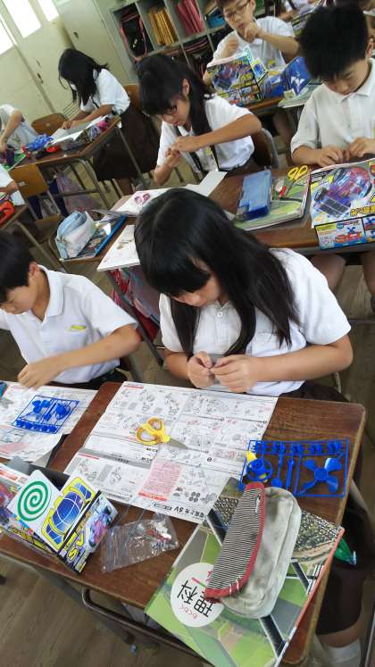 子どもたちは銅線をむいたり、プラグに巻いたり、一生懸命取り組んでいます。