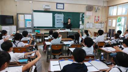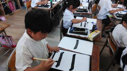 今日の習字の時間、初めて「一」と文字を書きました。「始筆」「終筆」などを教えてもらい、少し緊張しながらも熱心に取り組んでいました。