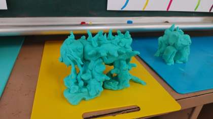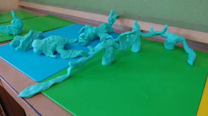 日曜参観の3時間目は、粘土で自分の考えた生き物を作りました。子供たちの発想豊かな楽しい作品がたくさんできました!