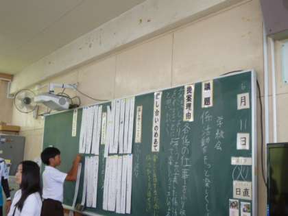 係活動について話し合う学級会を参観したのち、良かった点、改善できる点など、グループに分かれて活発な話し合いがもたれていました。