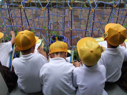 今日はあさがおの観察カードを書きました。育てていたあさがおが成長し、つるがどんどん伸びてきました。またあさがおの花が咲いている様子に子どもたちも「咲いてる!」と嬉しそうにしていました。