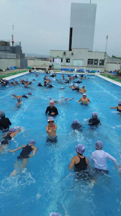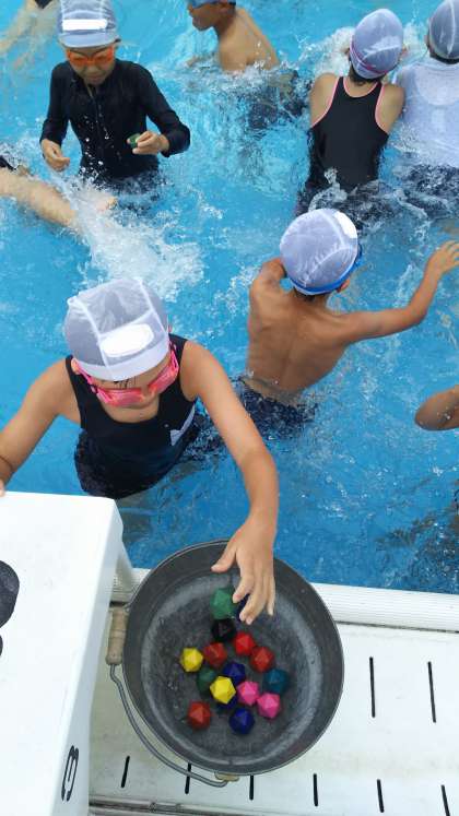 勝負は「宝探し」と「ボール渡し」と「大の字浮き」で競いました!
